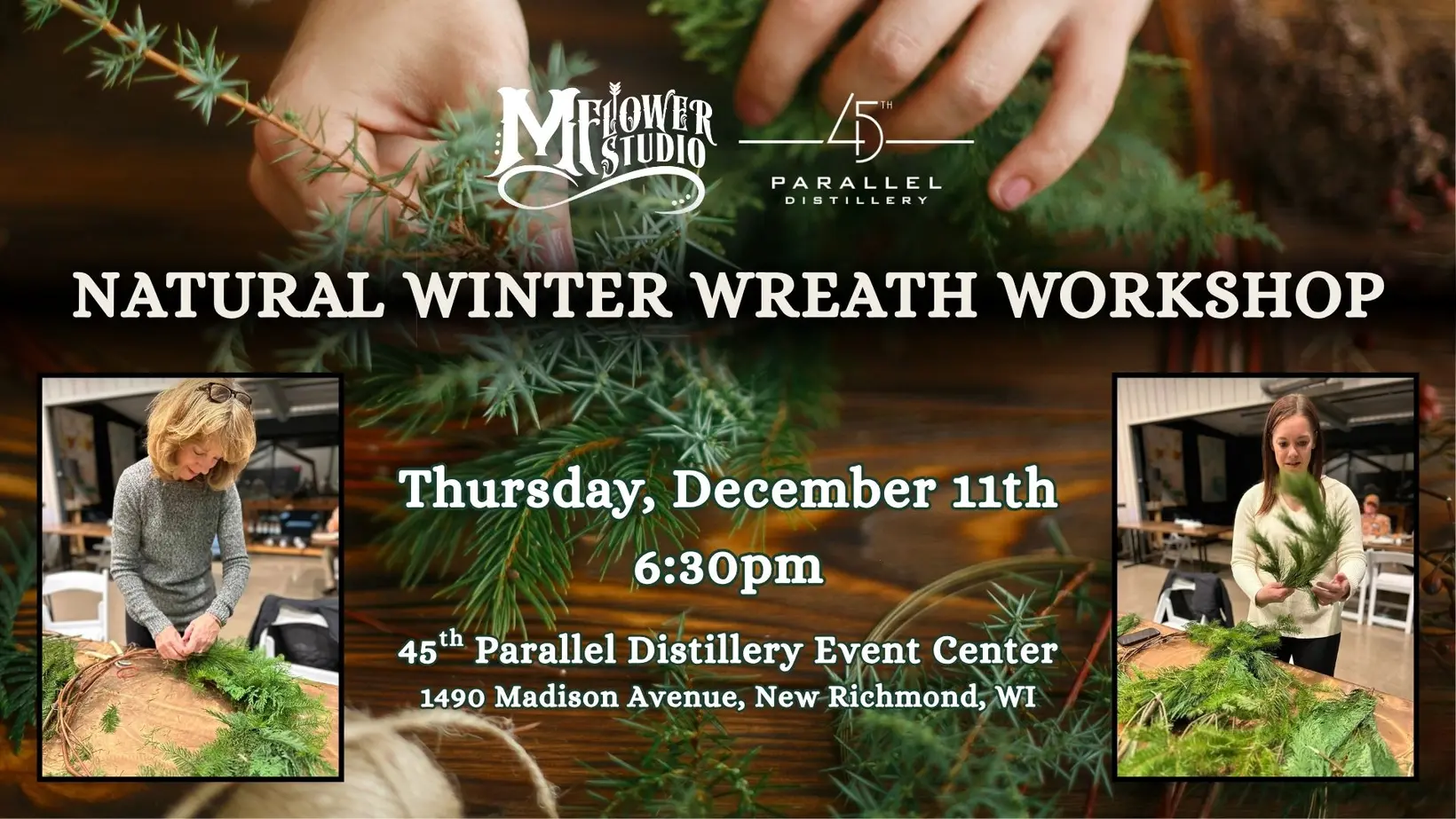 Join us and M Flower Studio for a fun night creating a Natural Winter Wreath!