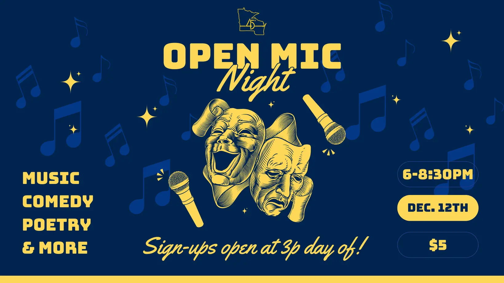 Looking for a night full of creativity, laughter, and good vibes? Join us for an open mic night where YOU take the stage!